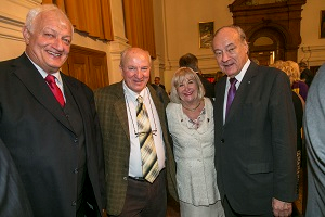 С десна на лево: Др Феликс Унгер, супруга професора Волфганга Рорбаха, професор Мирољуб Јевтић и професор доктор Волфганг Рорбах